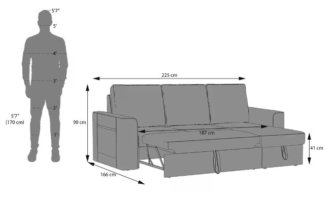 Enhance your living area with this elegant and multifunctional L-shaped fabric sofa cum bed designed for both comfort and style. Made with premium fabric upholstery, it offers a soft and inviting feel while ensuring durability for everyday use. Measuring 1.66 m in length, 2.25 m in width, and 90 cm in height, this sofa cum bed comfortably accommodates family and guests. Its solid construction supports a net weight of 78 kg, making it sturdy and reliable. The sofa effortlessly converts into a spacious bed, perfect for relaxing or accommodating overnight visitors. Backed by a 12-month warranty, it promises lasting quality and peace of mind. This piece combines modern aesthetics with practical functionality, making it an ideal centerpiece for contemporary homes.