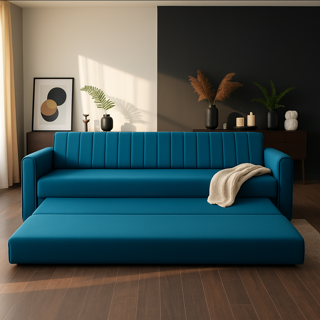 Experience smarter living with the Comfortex “TriFold Comfort” Sofa-Cum-Bed — a compact, stylish, and highly practical solution for modern homes. Designed with a smooth three-step opening mechanism, it effortlessly shifts from a cozy sofa into a spacious bed, making it ideal for guest stays, small apartments, or daily lounging.